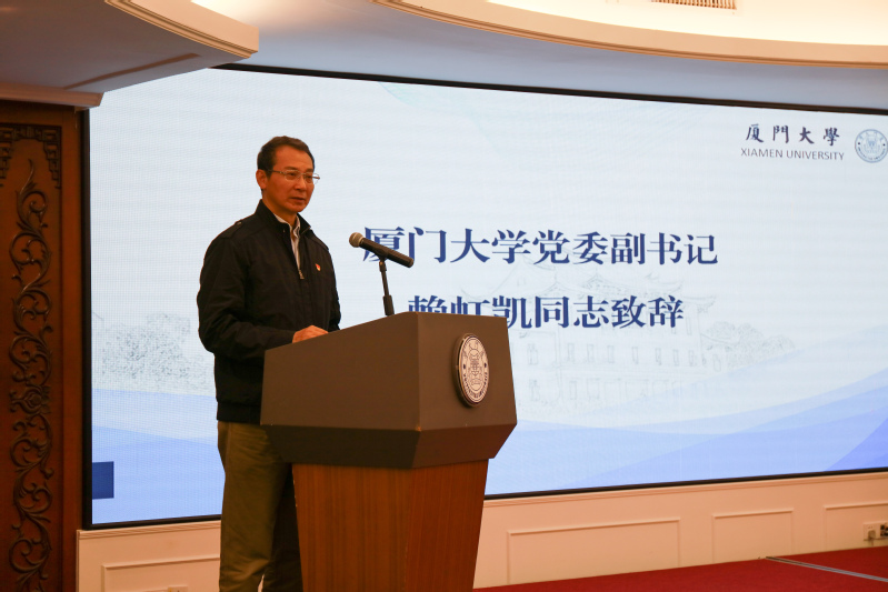 赖虹凯代表学校致辞,他指出,厦大在近百年的发展历程中,始终牢记“为党育人、为国育才”的初心使命,始终坚持党的领导、社会主义办学方向和扎根中国大地办教育,不断开创党建和思想政治工作新局面。他希望全体学员通过本期培训班,能够积极探索和研究高校思政工作的新思路、新方法、新规律,主动深入一线,在一线发现问题、研究问题、解决问题,不断提升思想政治工作水平。